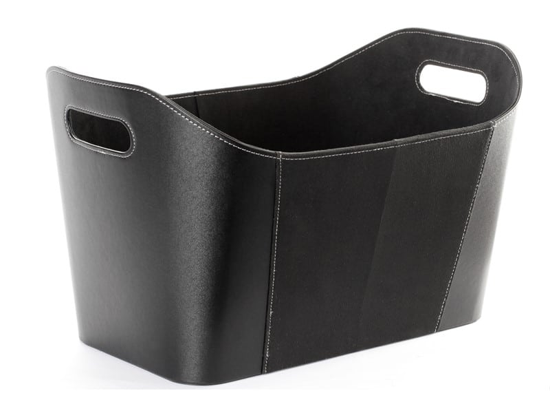 Wood basket imitation leather black