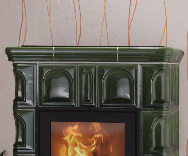 Die massive Kachelmantel speichert die Wärmeund und führt zu einer milderen Wärmeabgabe.