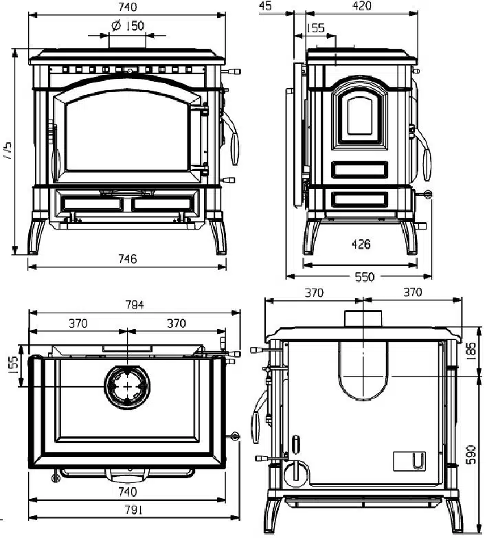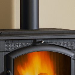 Robustes stabiles Gusseisen, kombiniert mit ansprechenden Details wie den Griffen aus Bakelit und einer großen Ofenscheibe, machen den Isotta zum Mittelpunkt im Wohnbereich. An der rechten Seite befindet sich eine zweite Befülltür, durch die das Feuer problemlos auch mit großen Scheiten versorgt werden kann.
