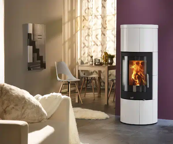 Die massive Kachelummantelung speichert die Wärme und führt zu einer milderen Wärmeabgabe.