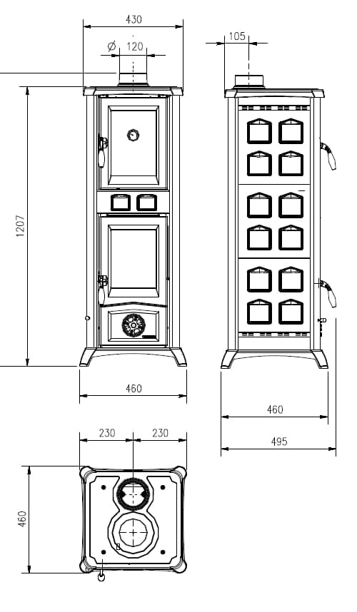 Der nostalgisch anmutende Gemma verfügt über modernste Hochtemperatur – Verbrennungstechnik und eine intelligent geführte Rauchumlenkung. Besonderheit: Backfach mit integriertem Thermometer.